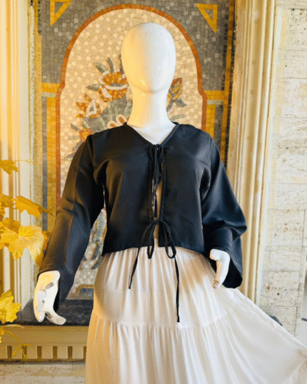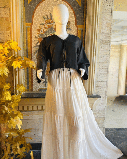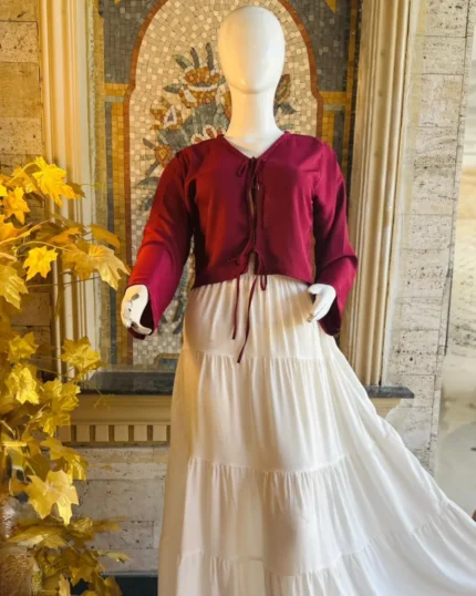Be the first to review “Maroon Drawstring Top Black Maxi Skirt Set” Cancel reply