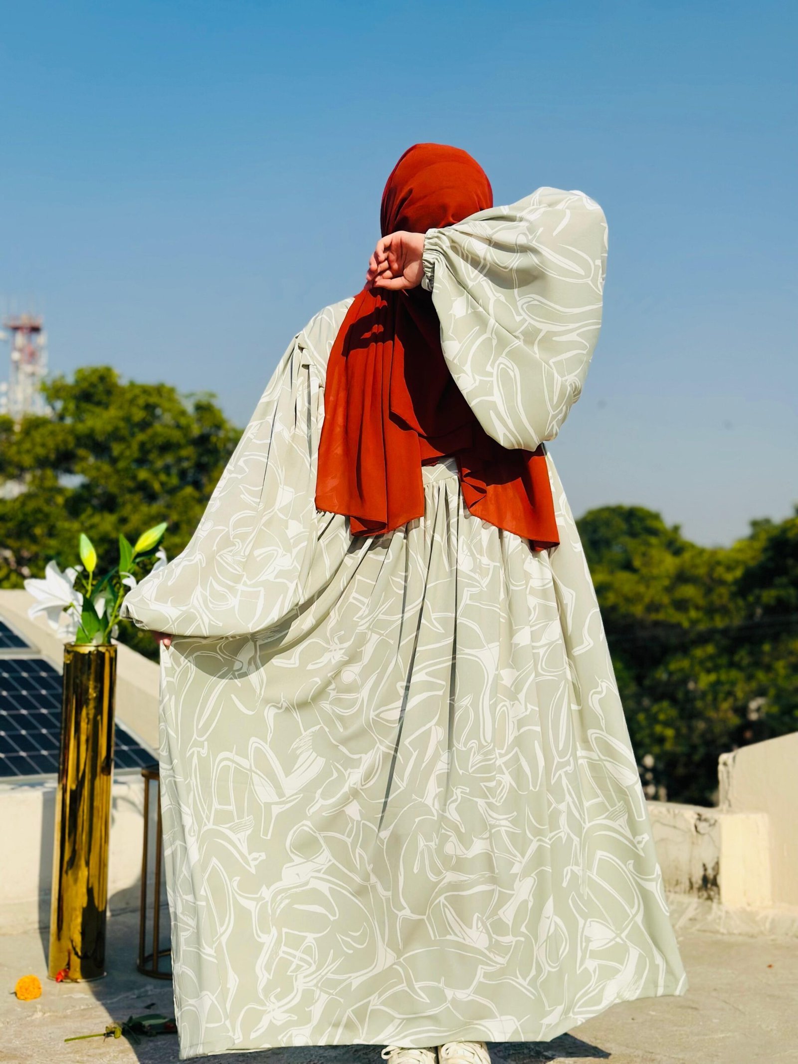 Elevate your modest wardrobe with this Printed Wide Sleeve Abaya in Soft Beige, exclusively designed by Libaas e Haya. Crafted with high-quality fabric and a flowy silhouette, this abaya features elegant balloon sleeves, a relaxed fit, and a modern printed design that blends comfort with sophistication.
