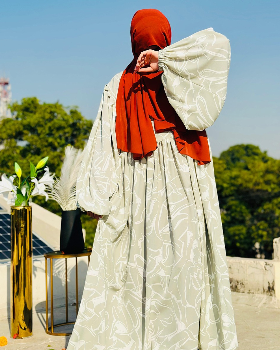 Perfect for daily wear, casual gatherings, and special occasions, this abaya offers full coverage while ensuring a stylish contemporary look. A versatile choice for women searching for printed abayas online, modern abaya styles in Pakistan, and fashionable Islamic clothing. Pair with a bold or neutral hijab to create your personalized modest outfit.